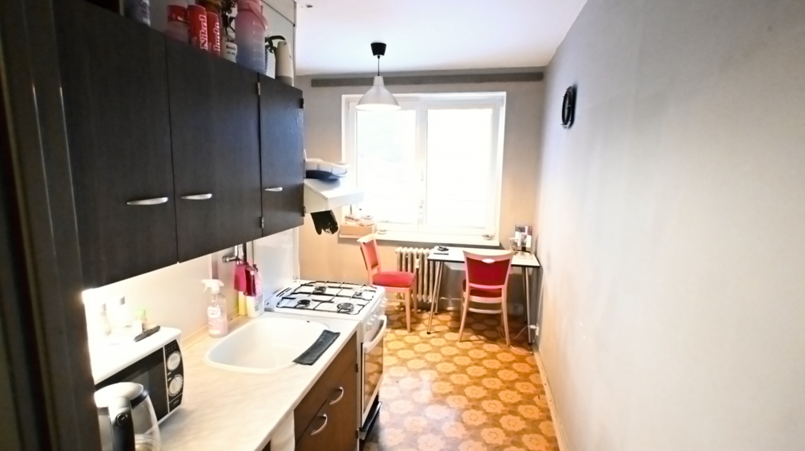 Byt je v původním, ale velmi zachovalém stavu. Okna jsou orientována na jih, díky čemuž je byt světlý a útulný.