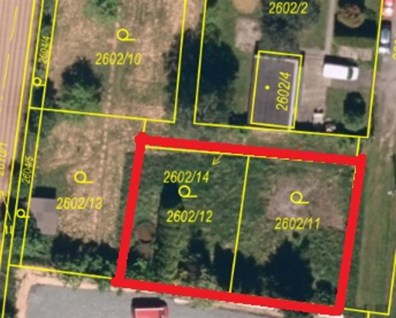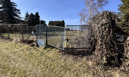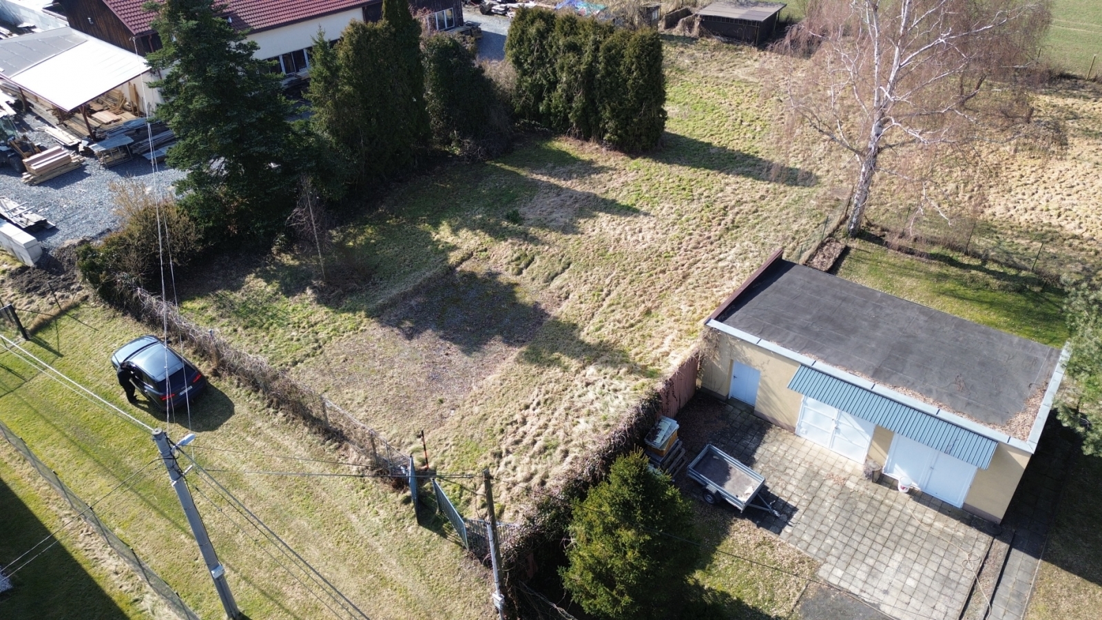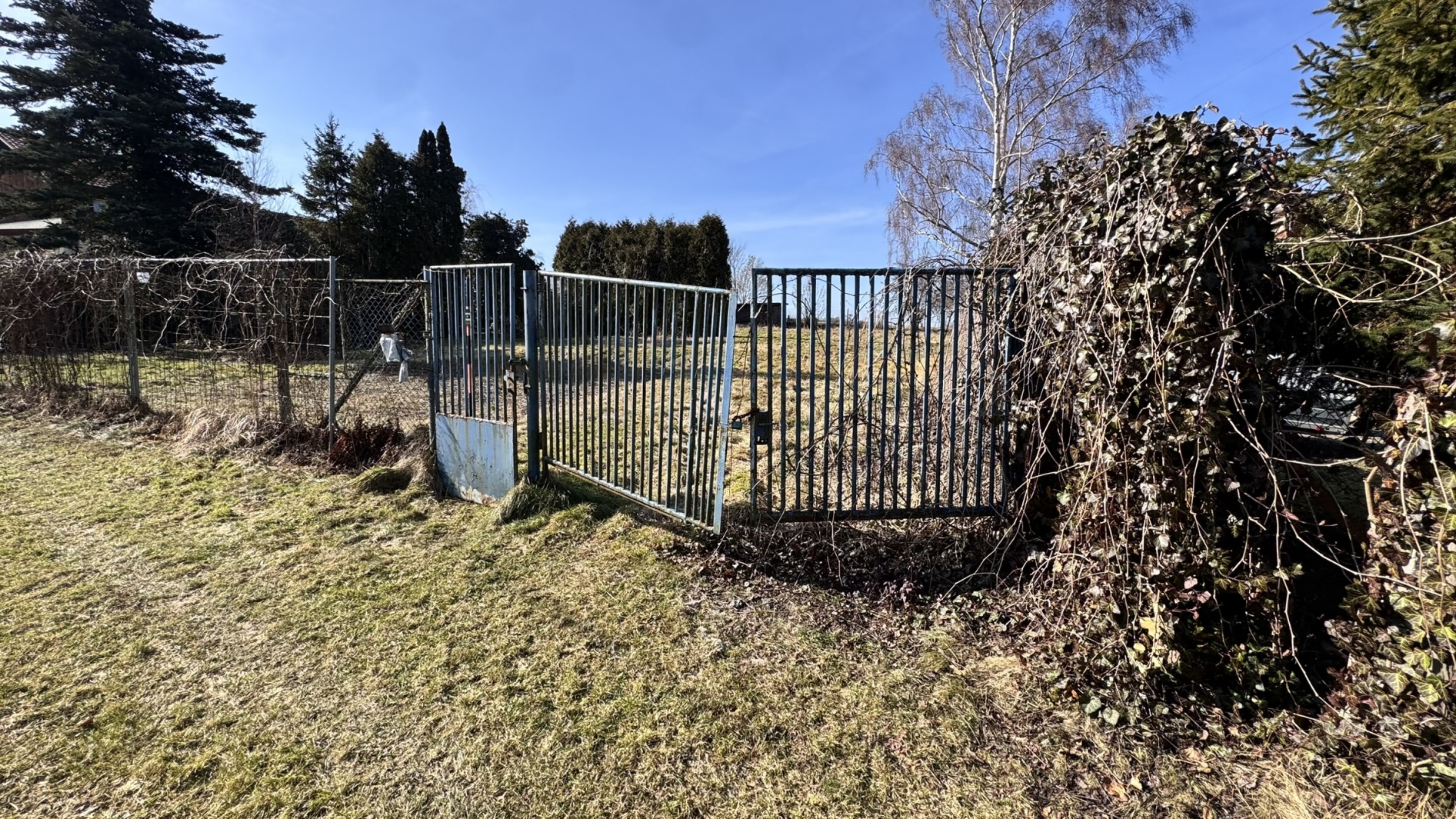 Pozemek má výměru cca 643 m² (rozměry přibližně 36 × 20 m) a je z poloviny oplocený. Přístup k pozemku je zajištěný podílem na cestě.
