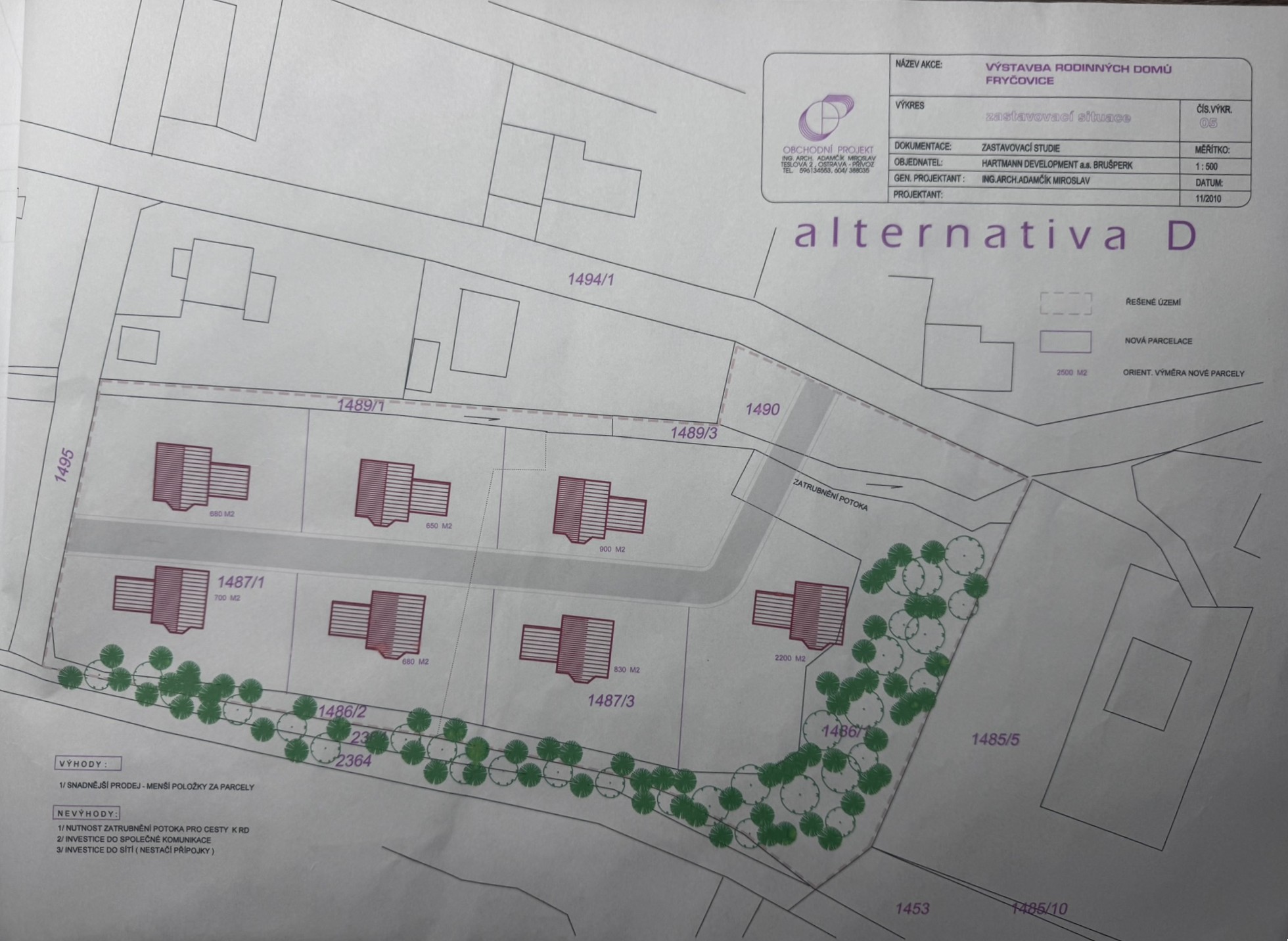Pozemek je rovinatý, má zajištěný přístup věcným břemenem a je připraven na napojení na inženýrské sítě (elektřina, voda, plyn). Podle územního plánu je zde možné vybudovat rodinné domy, řadové domy nebo obytné domy do výšky dvou pater. Ale pokud někdo hledá soukromí s velkým pozemkem tak je to taky velmi dobrá volba.