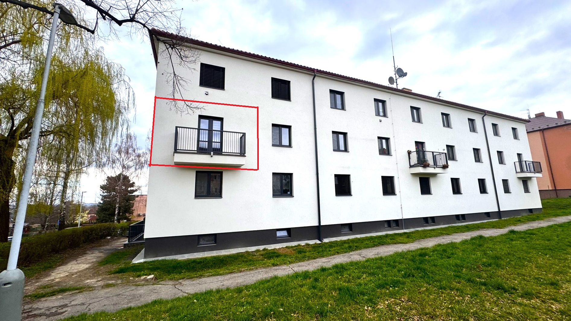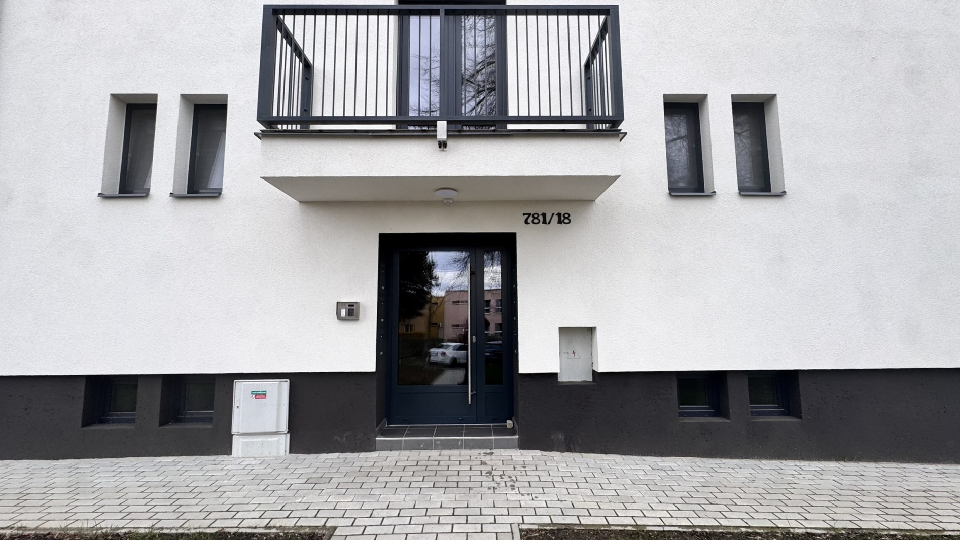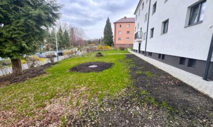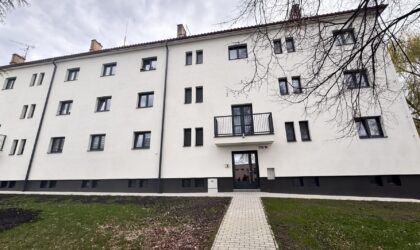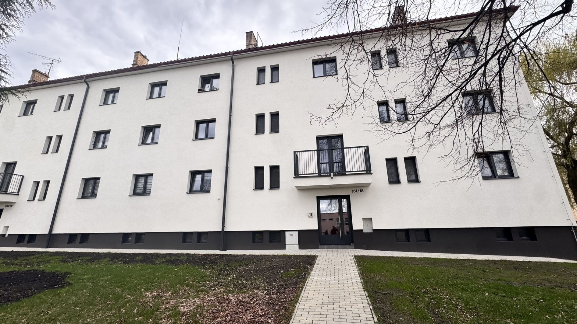 Dům prošel kompletní revitalizací (zateplení, nové vstupy, balkony, okna i střecha).