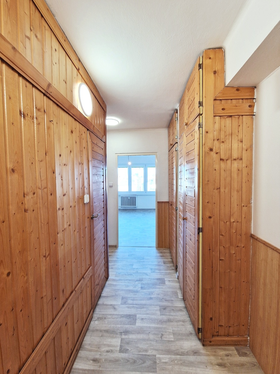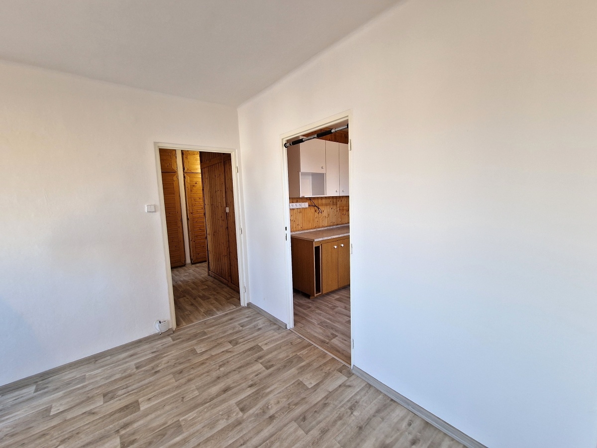 Byt nabízí praktickou dispozici vhodnou například pro jednotlivce nebo pár.