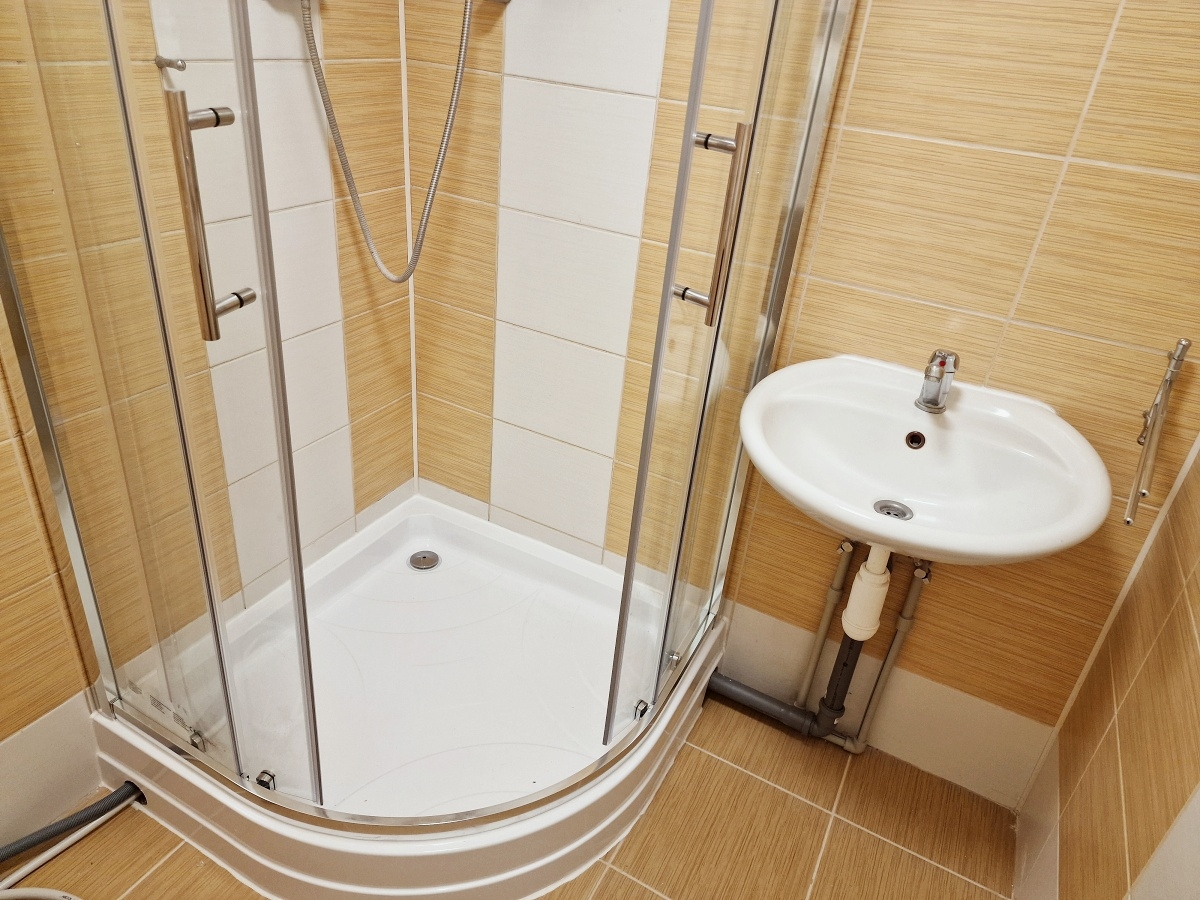 Do koupelny bude před předáním bytu ještě doplněna skříňka pod umyvadlo.