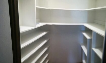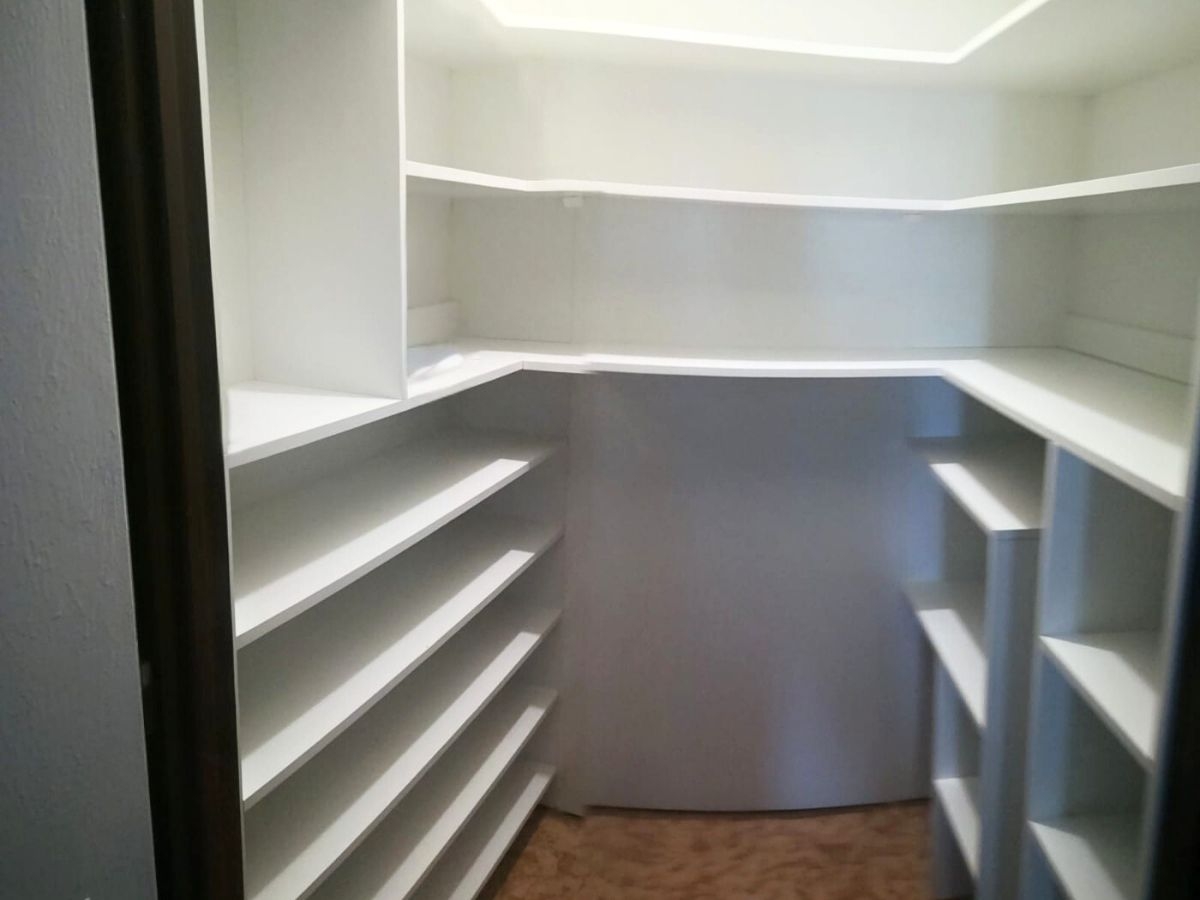 Součástí bytu je také komora s regálem pro přehledné uložení věcí.