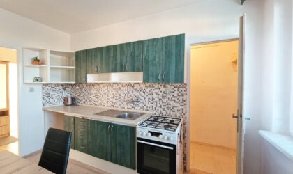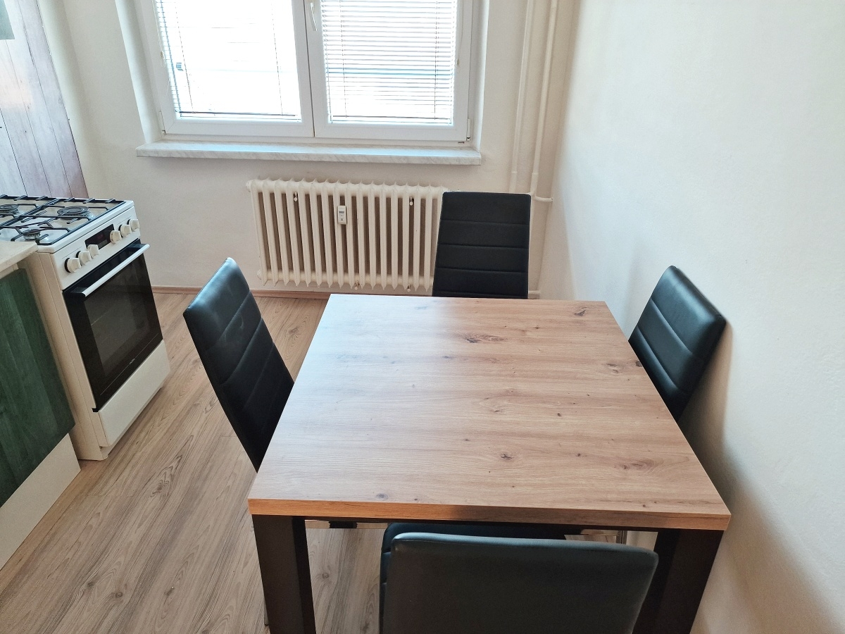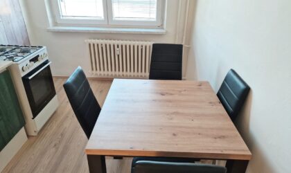 • částečné vybavení: kuchyňský stůl se židlemi, předsíňová stěna, koberec v jednom z pokojů, záclony